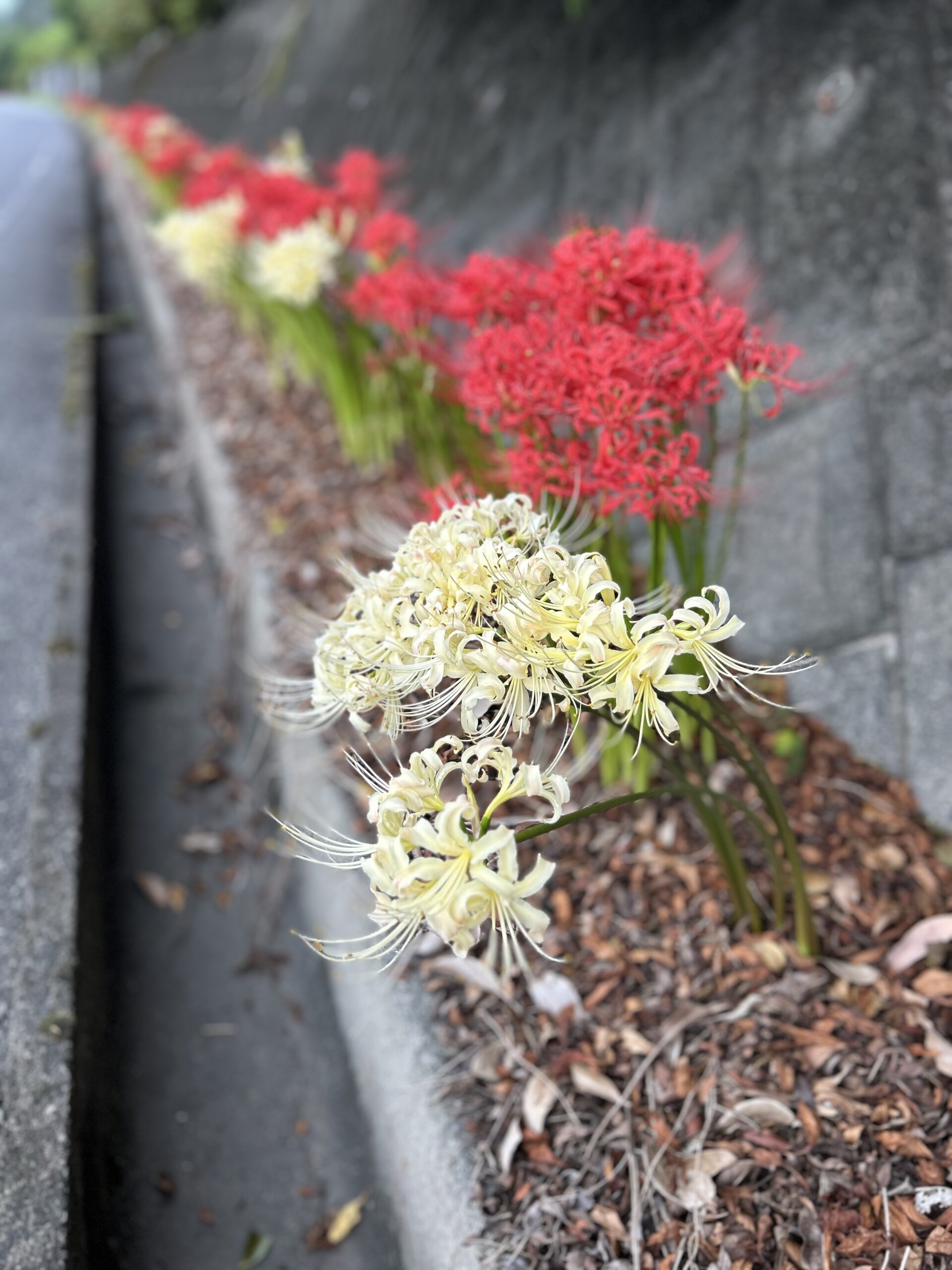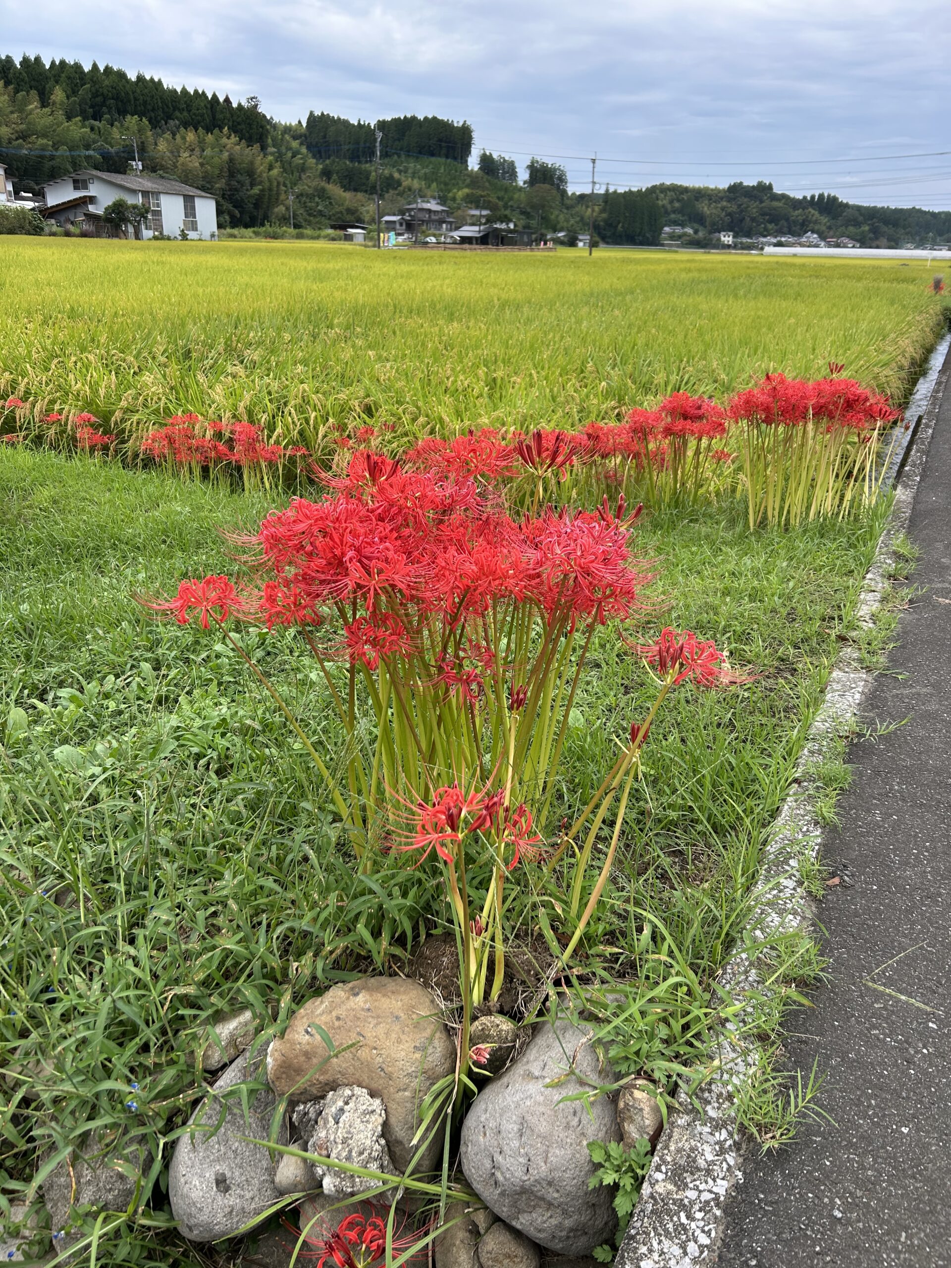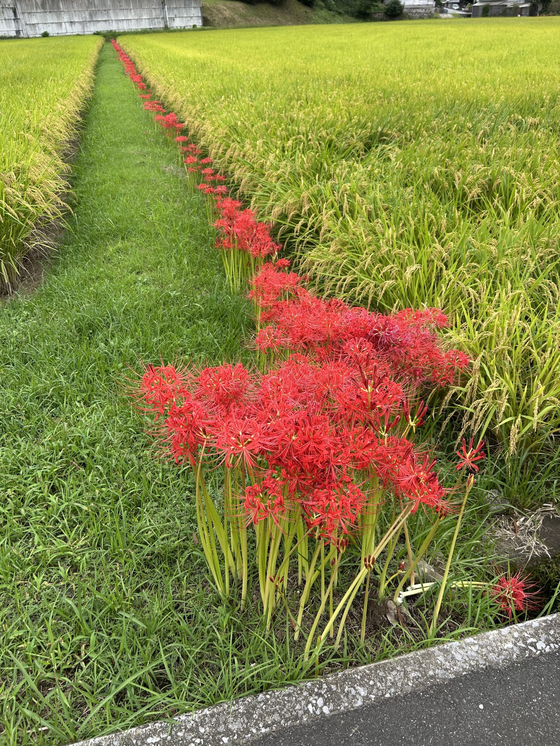 収穫を待つ田んぼの畦道に咲き誇っています。